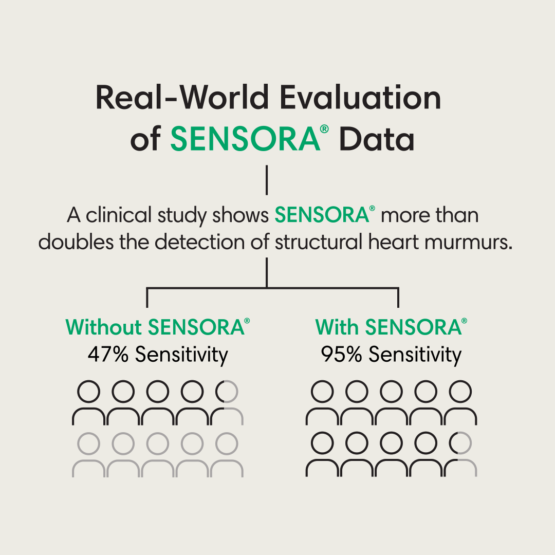 SENSORA® is an FDA-cleared AI platform that integrates with Eko's digital stethoscopes to help primary care clinicians quickly and accurately detect signs of cardiac disease.